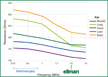 與傳統(tǒng)的"電刀"相比較,ellman?射頻技術(shù)僅產(chǎn)生他們1/3的側(cè)向熱損傷變形