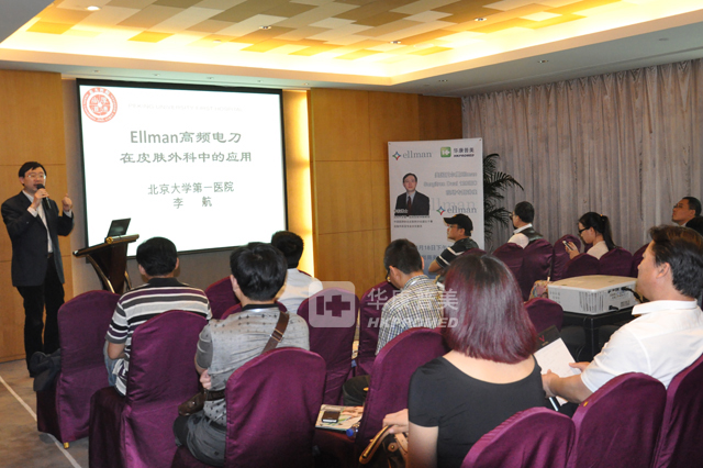北京華康普美科技有限公司是美國Ellman中國總代理,在第71屆深圳醫(yī)博會參展期間成功召開了“美國ellman雙頻射頻機招商大會”,得到了與會人員的肯定,更是邀請了北京大學(xué)第一醫(yī)院皮膚科副教授、中國醫(yī)師協(xié)會皮膚科分會副總干事、皮膚外科亞專業(yè)主任委員----李航博士在招商會現(xiàn)場講解了美國ELLMAN射頻刀在皮膚科的重要應(yīng)用。