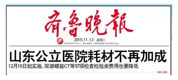 此外,據(jù)齊魯晚報報道,11月11日山東省政府召開的常務(wù)會還通過了《關(guān)于取消駐濟省(部)屬公立醫(yī)療機構(gòu)醫(yī)用耗材加成調(diào)整部分醫(yī)療服務(wù)價格的通知》,決定取消全部33家駐濟省(部)屬公立醫(yī)療機構(gòu)醫(yī)用耗材加成,調(diào)整524項醫(yī)療服務(wù)項目價格。