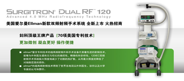 美國愛爾曼全新Ellman Surgitron Dual 120專注于婦科的應(yīng)用,能夠在所有組織,包括薄壁組織,交融組織或者無張力組織中,像手術(shù)刀一樣操作進(jìn)行無壓力切割,能夠?qū)崿F(xiàn)操作多樣化、精確化;攜帶方便、免維護(hù)。顯著優(yōu)勢:全數(shù)字射頻能量調(diào)節(jié)更加精準(zhǔn);全球最先進(jìn)的雙射頻頻率輸出:4.0Mhz/1.7Mhz切割更加微創(chuàng),凝血效果更加強勁;使用多功能操作手柄操作更加方便讓醫(yī)生得心應(yīng)手。
