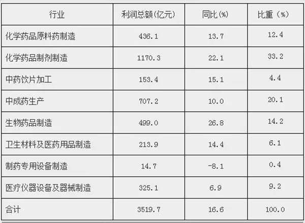 2017年醫(yī)藥產(chǎn)業(yè)分子行業(yè)利潤(rùn)總額