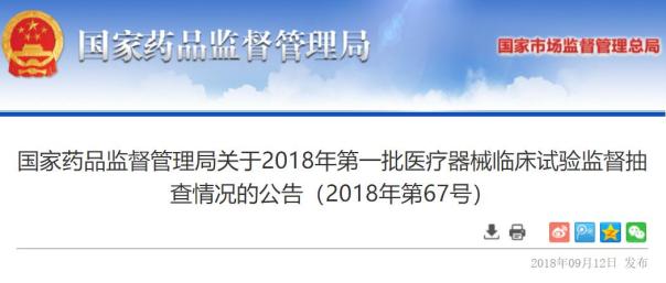 2018年第一批醫(yī)療器械臨床試驗監(jiān)督抽查情況公布