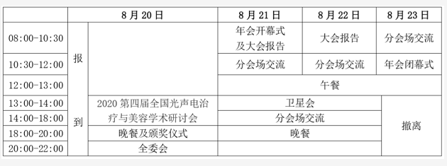 2020年8月20日報到,21-22日全天、23日上午會議,23日下午撤離。