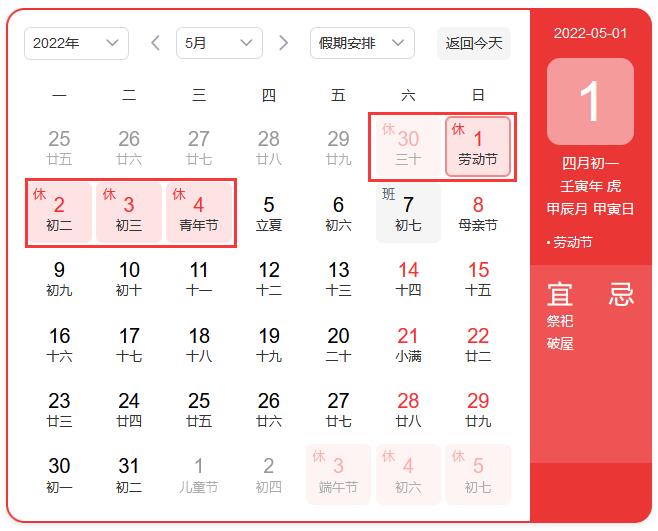 五一勞動節(jié)假期安排見下圖: