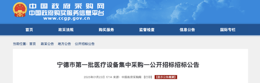 多地發(fā)布招標(biāo)信息1月23日,據(jù)中國(guó)政府采購(gòu)網(wǎng)消息,福建寧德市第一批醫(yī)療設(shè)備集中采購(gòu)公開(kāi)招標(biāo)。