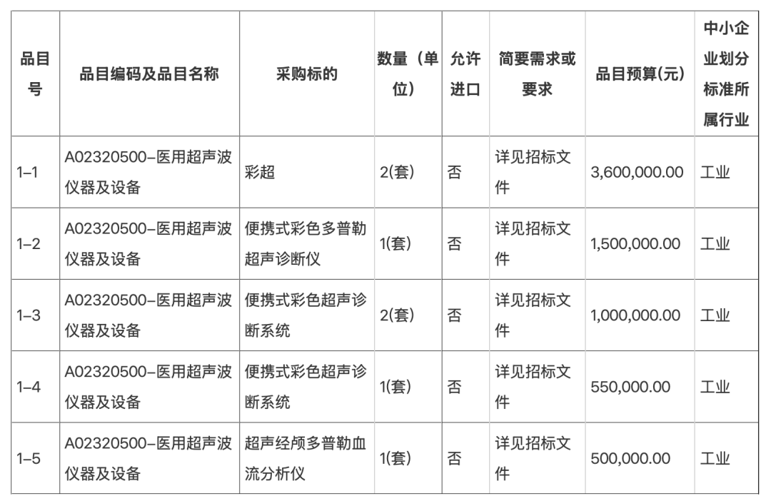 去年,無(wú)錫市衛(wèi)健委會(huì)根據(jù)2024年市屬醫(yī)院醫(yī)療設(shè)備購(gòu)置計(jì)劃,選定超聲診斷類設(shè)備為2024年批量集中采購(gòu)試點(diǎn)項(xiàng)目。計(jì)劃采購(gòu)彩色多普勒超聲診斷儀37臺(tái),采購(gòu)預(yù)算5053萬(wàn)元,包括高端彩色多普勒診斷儀11臺(tái)、中高端彩色多普勒診斷儀12臺(tái)、便攜式彩色多普勒診斷儀14臺(tái)。