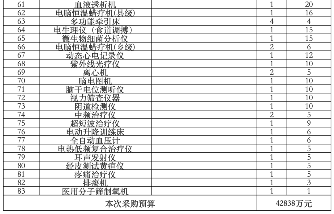 1月23日,甘肅衛(wèi)健委發(fā)布《甘肅省縣域醫(yī)共體醫(yī)療設(shè)備更新項(xiàng)目采購(gòu)需求調(diào)查征集公告》,采購(gòu)預(yù)算約4.28億元。