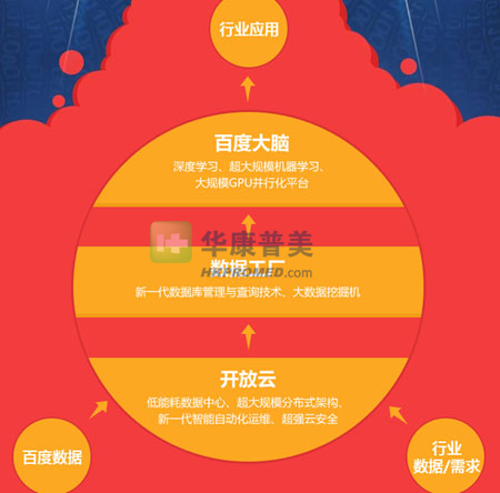 開放云指的是這套引擎的基礎(chǔ)架構(gòu)——分布式的低能耗數(shù)據(jù)中心,也就是前文提到的硬件部分。其中包括數(shù)據(jù)中心的服務(wù)器設(shè)計、數(shù)據(jù)中心規(guī)劃和設(shè)計、分布式系統(tǒng)、超大規(guī)模集群自動化運(yùn)維、大規(guī)模GPU并行化平臺等。其次是數(shù)據(jù)工廠,它可以支持超大規(guī)模的異構(gòu)數(shù)據(jù)查詢和大數(shù)據(jù)分析,也就是調(diào)用硬件,來完成數(shù)據(jù)的挖掘和分析。而百度大腦,其實(shí)是對單集群規(guī)模數(shù)據(jù)能力的擴(kuò)展——基于深度學(xué)習(xí)技術(shù),讓機(jī)器模擬人類大腦多層神經(jīng)元的思維模式做出預(yù)測模型。