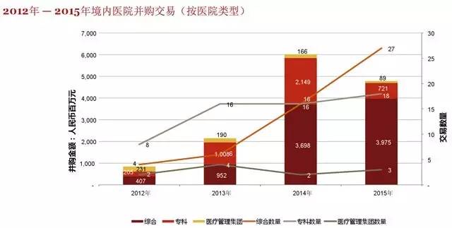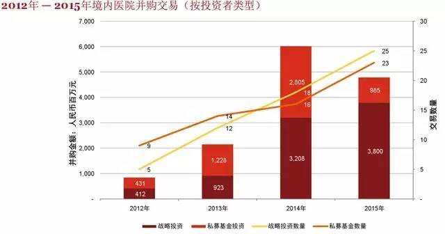 普華永道中國(guó)華北區(qū)企業(yè)并購(gòu)服務(wù)部及醫(yī)療行業(yè)主管合伙人錢(qián)立強(qiáng)表示:“由于有望快速擴(kuò)大規(guī)模并回收投資,醫(yī)療風(fēng)險(xiǎn)較小的連鎖型專科醫(yī)院,如口腔和婦幼醫(yī)院,最受投資者青睞。但近年來(lái)這類(lèi)標(biāo)的逐漸稀缺,2015年交易規(guī)模大幅下降。而具有一定規(guī)模、有穩(wěn)定現(xiàn)金流并能利用投資提升業(yè)績(jī)的二、三級(jí)綜合醫(yī)院并購(gòu)活動(dòng)出現(xiàn)大幅增長(zhǎng)。”