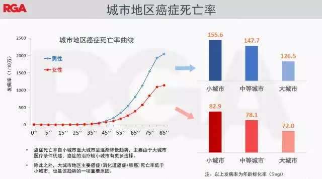 隨著城市化的發(fā)展,男性癌癥風險逐漸降低,小城市男性風險最高;