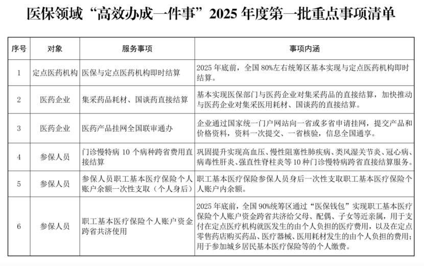 《清單》中明確,醫(yī)保與定點(diǎn)醫(yī)藥機(jī)構(gòu)即時(shí)結(jié)算,2025年底前,全國(guó)80%左右統(tǒng)籌區(qū)基本實(shí)現(xiàn)與定點(diǎn)醫(yī)藥機(jī)構(gòu)即時(shí)結(jié)算。