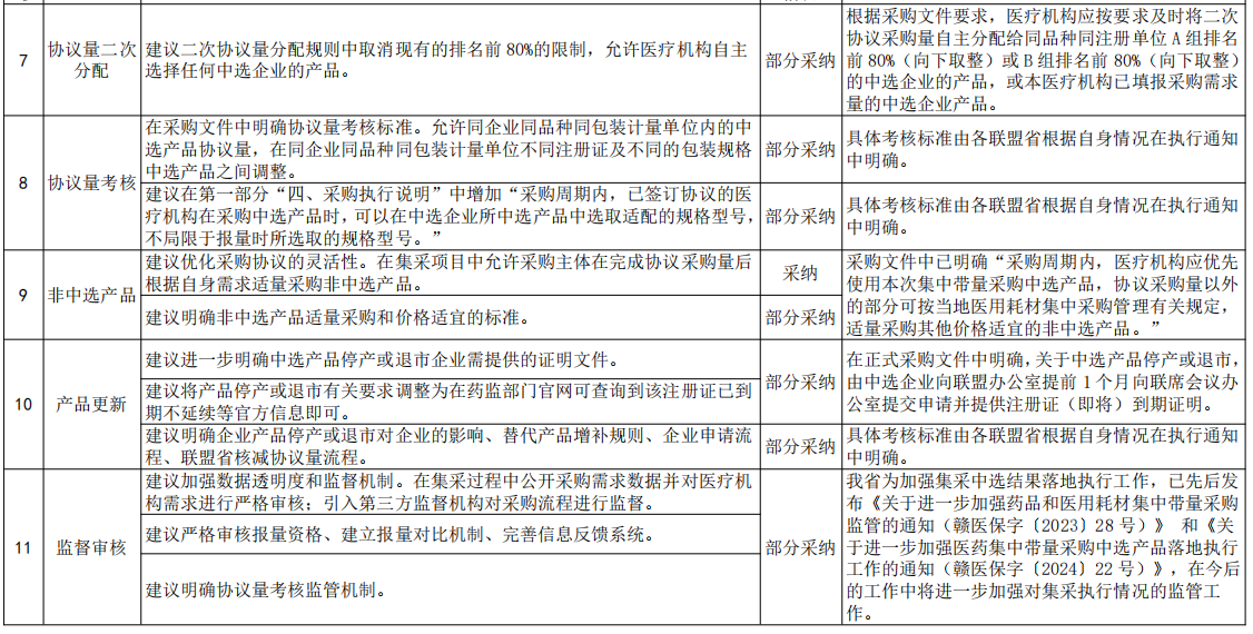 但也有多條意見未被采納,例如在競價分組階段“將大中小企業(yè)分為不同競價組別”“根據(jù)醫(yī)院等級來劃分A組資格””增設(shè)C組分類“等。對此官方明確表示,根據(jù)政府采購有關(guān)規(guī)定,不得將企業(yè)規(guī)模作為資格要求或評審因素。按醫(yī)療機(jī)構(gòu)采購需求量等因素劃分AB組,既兼顧全聯(lián)盟地區(qū)臨床使用需求,又能保證企業(yè)競爭公平性。