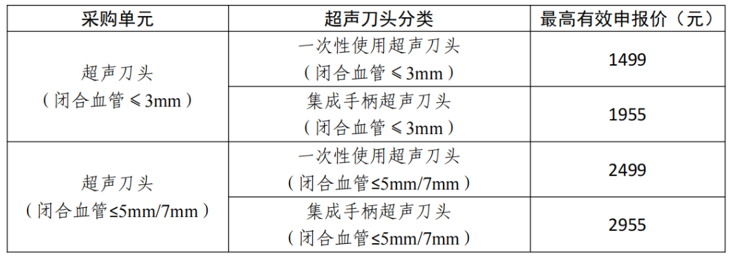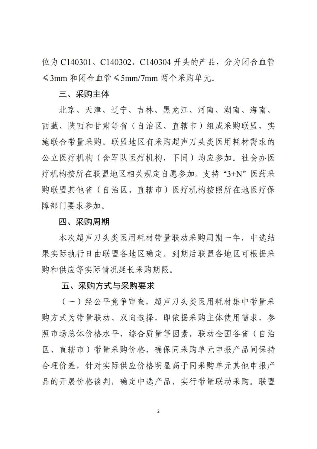 填報(bào)品種:獲得國(guó)內(nèi)有效注冊(cè)證的超聲刀頭類(lèi)醫(yī)用耗材,范圍為國(guó)家醫(yī)保局醫(yī)保醫(yī)用耗材編碼前7位為C140301、C140302、C140304開(kāi)頭的產(chǎn)品,分為閉合血管<3mm 和閉合血管<5mm/7mm 兩個(gè)采購(gòu)單元。