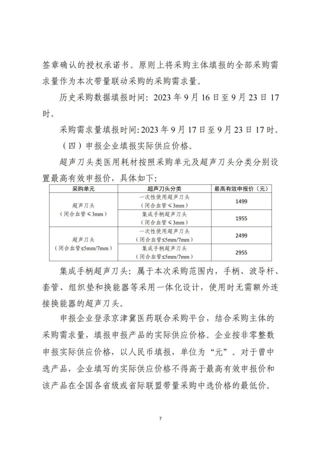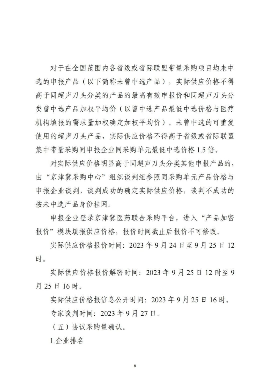 9月15日,京津冀醫(yī)藥聯(lián)合采購(gòu)平臺(tái)發(fā)布《關(guān)于開(kāi)展京津冀“3+N”聯(lián)盟超刀頭類(lèi)醫(yī)用耗材帶量聯(lián)動(dòng)采購(gòu)有關(guān)工作的通知》,公布了最高有效申報(bào)價(jià)以及中選與采購(gòu)需求量分配規(guī)則。