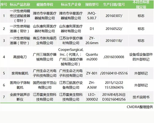 被抽檢項目為標識標簽、說明書等項目不符合標準規(guī)定的醫(yī)療器械產品:涉及7家企業(yè)的4個品種7批(臺)。