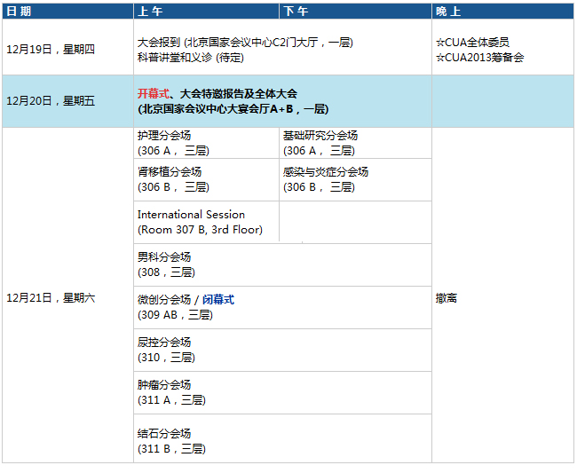 由中華醫(yī)學(xué)會、中華醫(yī)學(xué)會泌尿外科學(xué)分會主辦,北京醫(yī)學(xué)會承辦的第二十屆全國泌尿外科學(xué)術(shù)會議(CUA2013)將于2013年12月19~21日在北京市國家會議中心召開。去年年會,廣東省泌尿外科同道以熱情的精神風(fēng)貌、專業(yè)的工作表現(xiàn),全方位詮釋了“CUA粵精彩”這一主題。2013年,北京的同道將以“創(chuàng)新、國際化、兼容并蓄”的宏大視角,展示CUA 及其全國年會在新思想交匯、學(xué)術(shù)觀點(diǎn)爭鳴、技術(shù)成果展示、對外窗口作用與交流合作、人才培養(yǎng)、縮小地區(qū)間學(xué)科發(fā)展不平衡等各方面的巨大凝聚力及影響力——CUA 更精彩!一年一度的全國泌尿外科學(xué)術(shù)會議是CUA 的重點(diǎn)學(xué)術(shù)活動(dòng),也是展示我國泌尿外科領(lǐng)域最新研究成果、推動(dòng)學(xué)科全面發(fā)展的一個(gè)重要平臺。