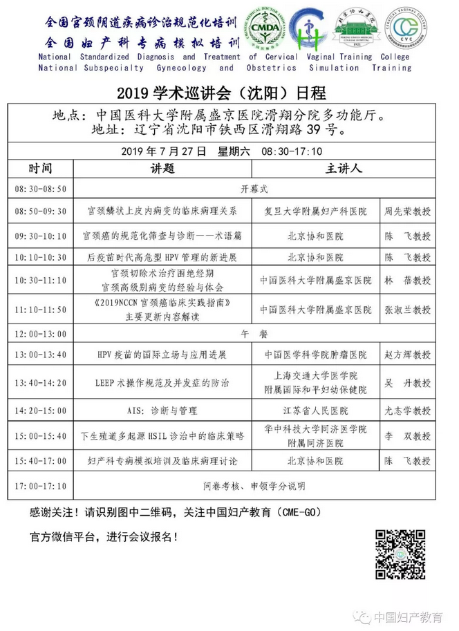 沈陽站是CVC及GOST總第40站學(xué)術(shù)會,2019年巡講第7站。會議全程免費(fèi)(含教材、培訓(xùn)、學(xué)分、餐飲等),交通及住宿費(fèi)自理。通過項(xiàng)目官方微信公眾平臺完成會前報(bào)名、會后反饋及學(xué)分登記,并全程參加培訓(xùn)者,可免費(fèi)授予學(xué)分。
