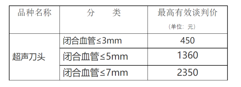 江蘇省閉合血管 5mm、3mm超聲刀頭最高有效申報(bào)價(jià)分別為設(shè)置為 2700元和1700 元,最終超聲刀頭平均降幅49%。