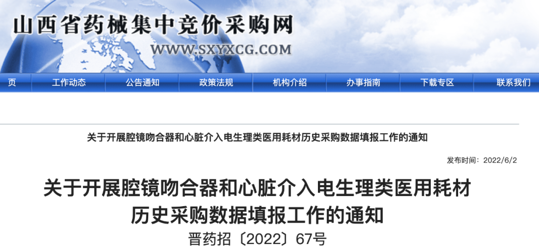 近日,山西省藥械集中招標(biāo)采購(gòu)中心、西藏自治區(qū)醫(yī)保局先后發(fā)布通知,要求開展腔鏡吻合器和心臟介入電生理類醫(yī)用耗材歷史采購(gòu)數(shù)據(jù)填報(bào)工作。