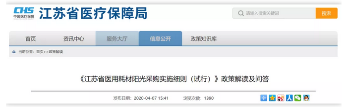 4月7日,江蘇醫(yī)保局發(fā)布《<江蘇省醫(yī)用耗材陽光采購實(shí)施細(xì)則(試行)>政策解讀及問答》(下稱《解讀》顯示,高值耗材價(jià)格必須是全國最低價(jià)。