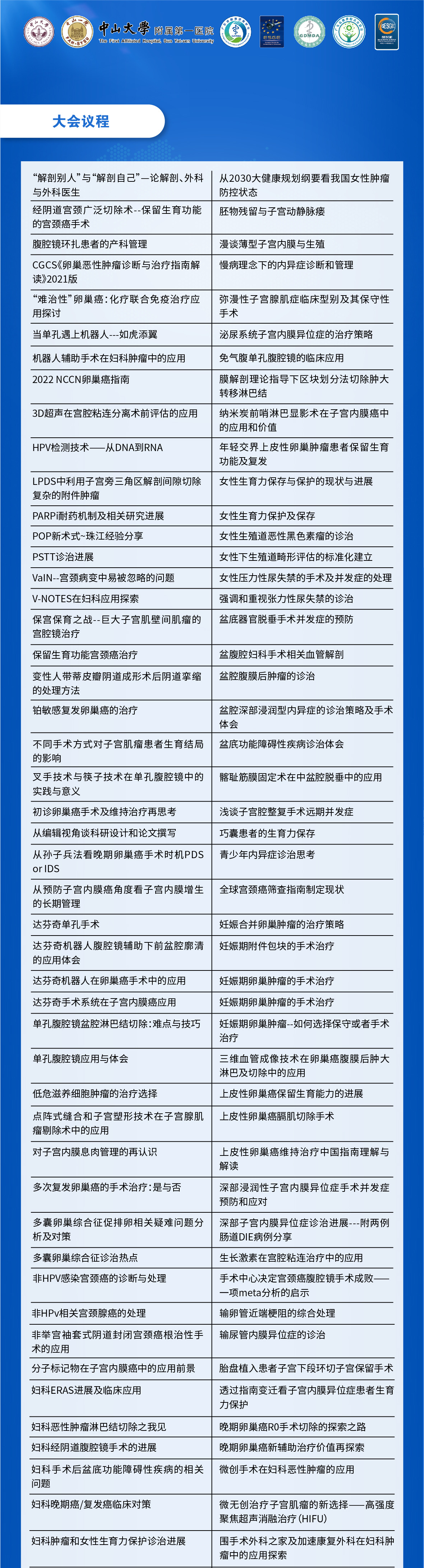線下會議舉辦地點位于中山大學附屬第一醫(yī)院婦科生殖醫(yī)學中心11樓會議室,講課專家在專家所在地進行線上授課或線下授課。由直播平臺進行網上直播,供婦產科同道免費在線觀看學習。屆時,260多名國內外婦科內鏡領域的頂尖專家學者將針對當前婦科內鏡與腫瘤治療的相關熱點和難點問題進行專題講座和手術演示。