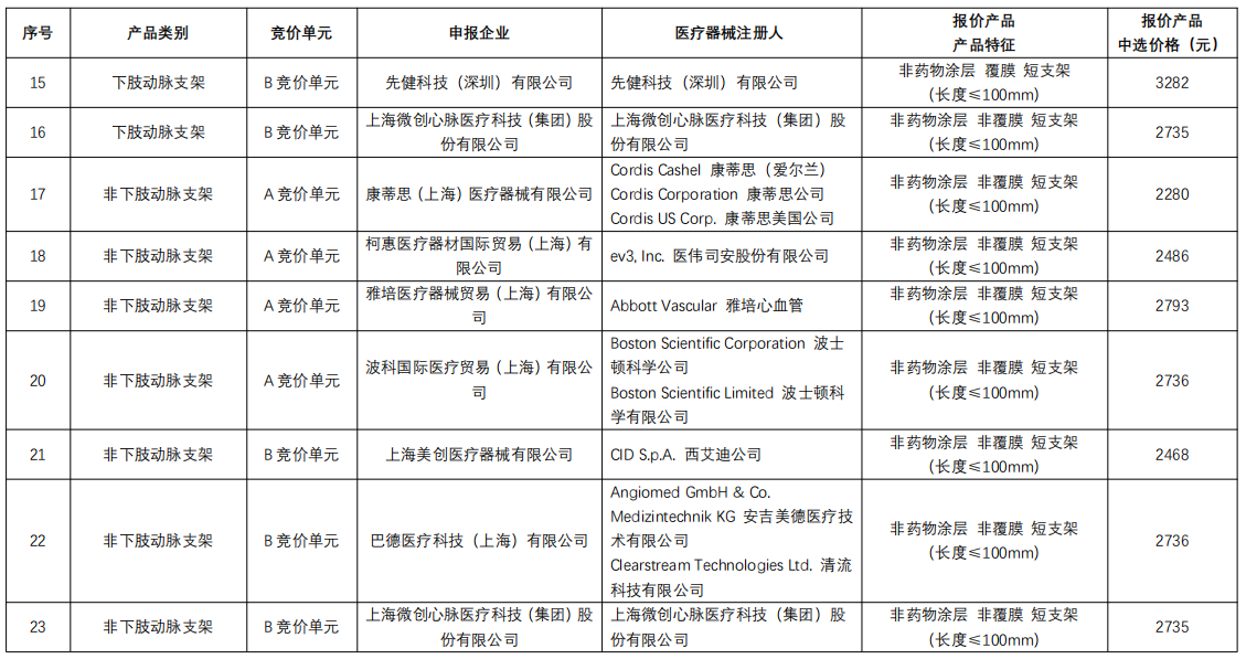 下肢動(dòng)脈支架:庫克醫(yī)療、維芮安醫(yī)療通過規(guī)則二中選,巴德醫(yī)療、波科、先鋒科技、心脈醫(yī)療通過規(guī)則三中選;非下肢動(dòng)脈支架:巴德醫(yī)療通過規(guī)則二中選,波科、心脈醫(yī)療通過規(guī)則三中選;靜脈支架:藍(lán)脈醫(yī)療、恩盛醫(yī)療、茵絡(luò)醫(yī)療通過規(guī)則二中選,天鴻盛捷、唯強(qiáng)醫(yī)療、安泰生物規(guī)則三中選。