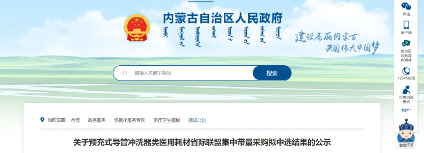 11月21日,內蒙古醫(yī)保局發(fā)布《關于預充式導管沖洗器類醫(yī)用耗材省際聯(lián)盟集中帶量采購擬中選結果的公示》。