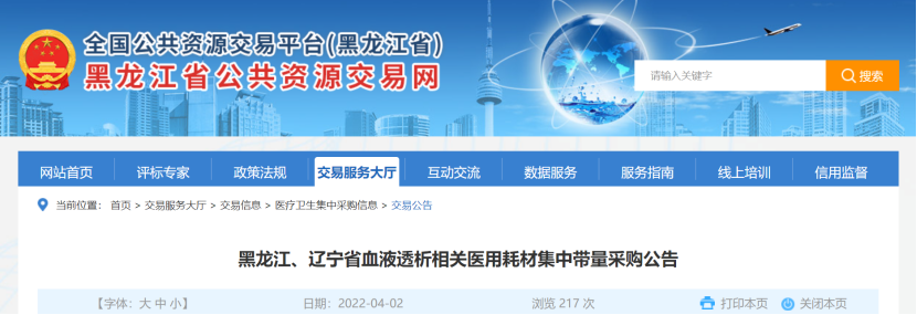 近日,黑龍江公共資源交易中心發(fā)布《黑龍江、遼寧省血液透析相關醫(yī)用耗材集中帶量采購公告》,將對11種血液透析類耗材開展集采。