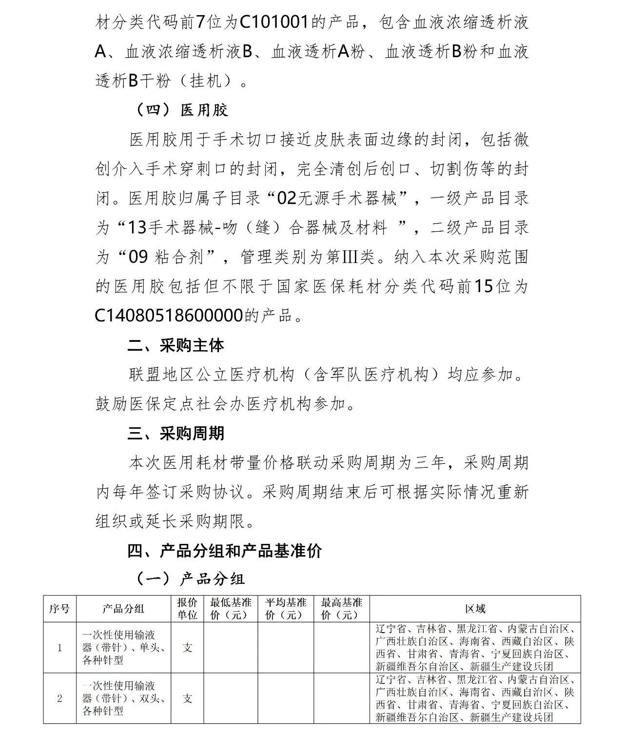 此次價格聯(lián)動采購品種為輸液器、預(yù)充式導(dǎo)管沖洗器、血液透析濃縮物、醫(yī)用膠,品種分組、聯(lián)動地區(qū)如下:
