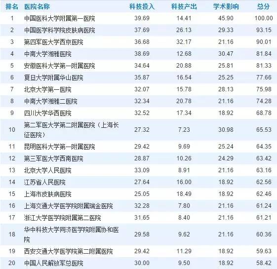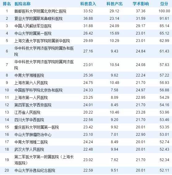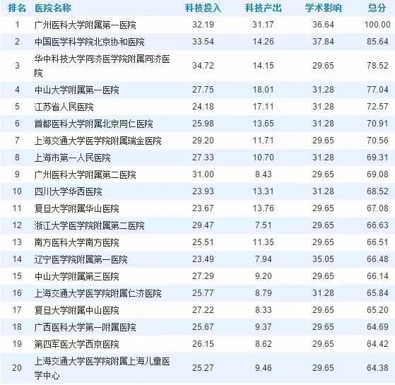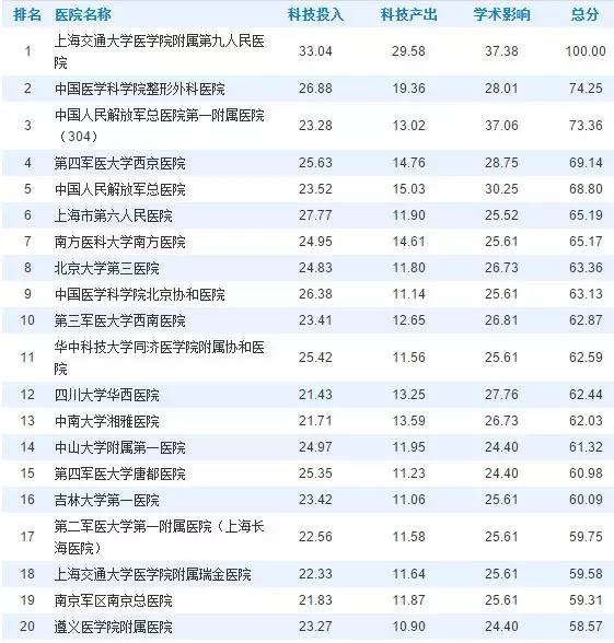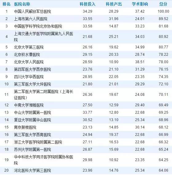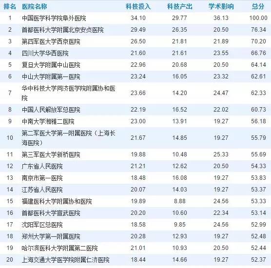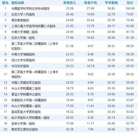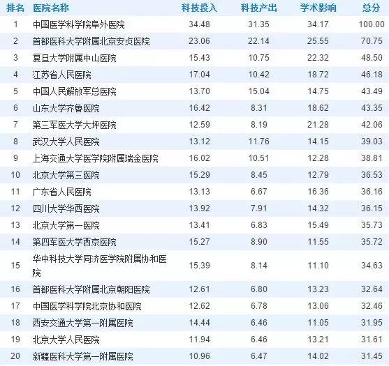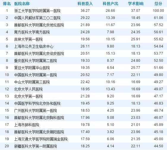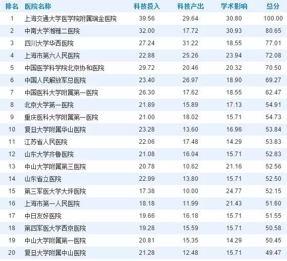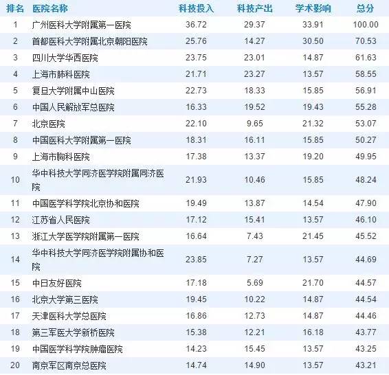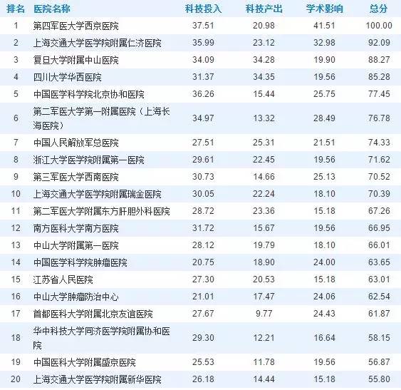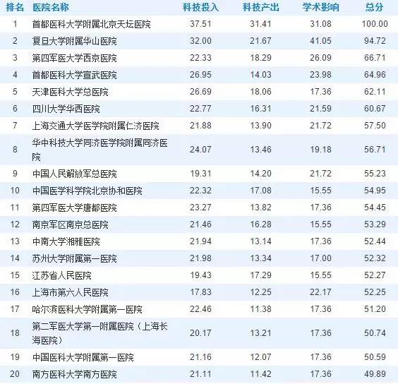 2015年度中國醫(yī)院科技影響力——主要學科排行榜發(fā)布