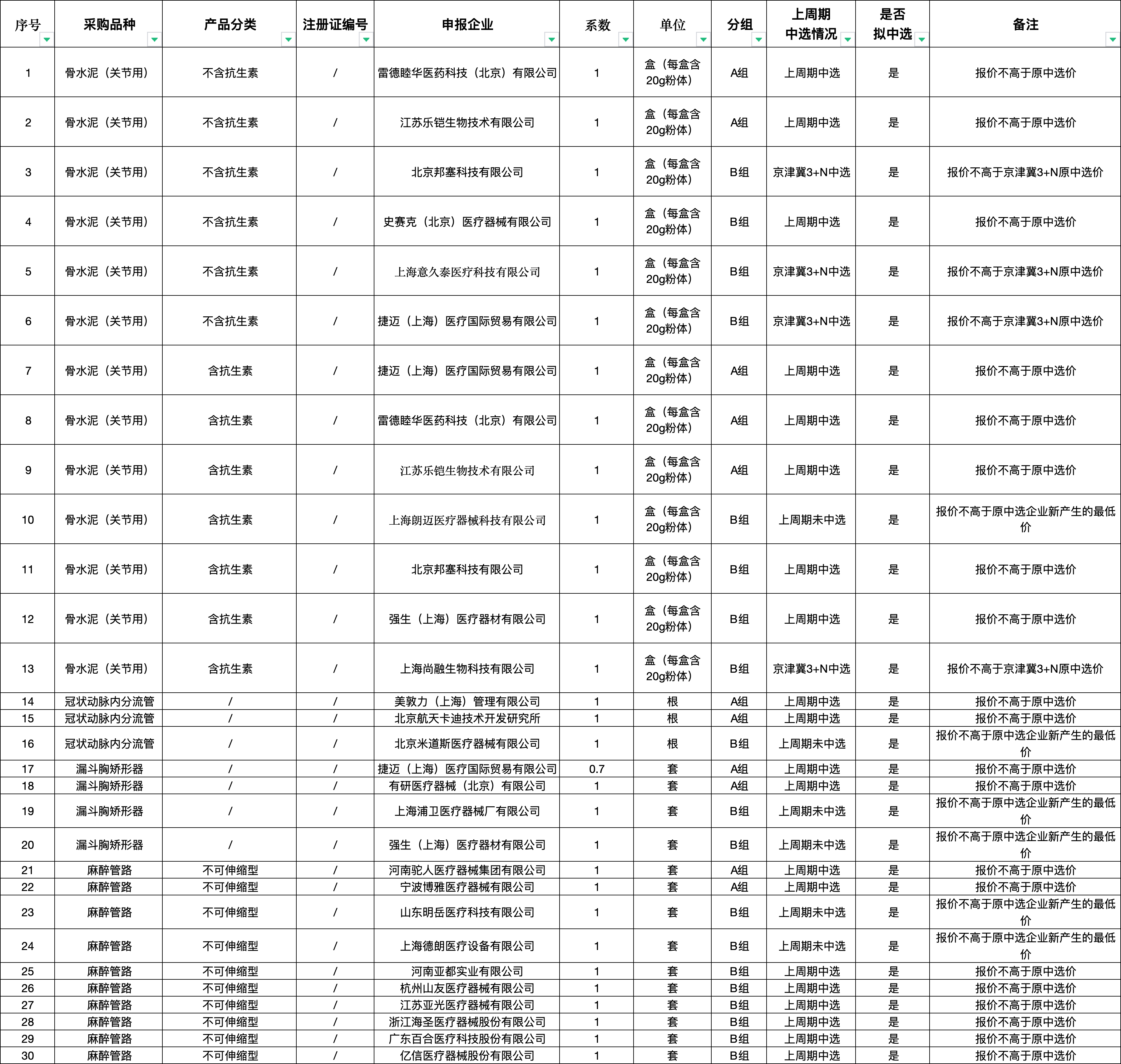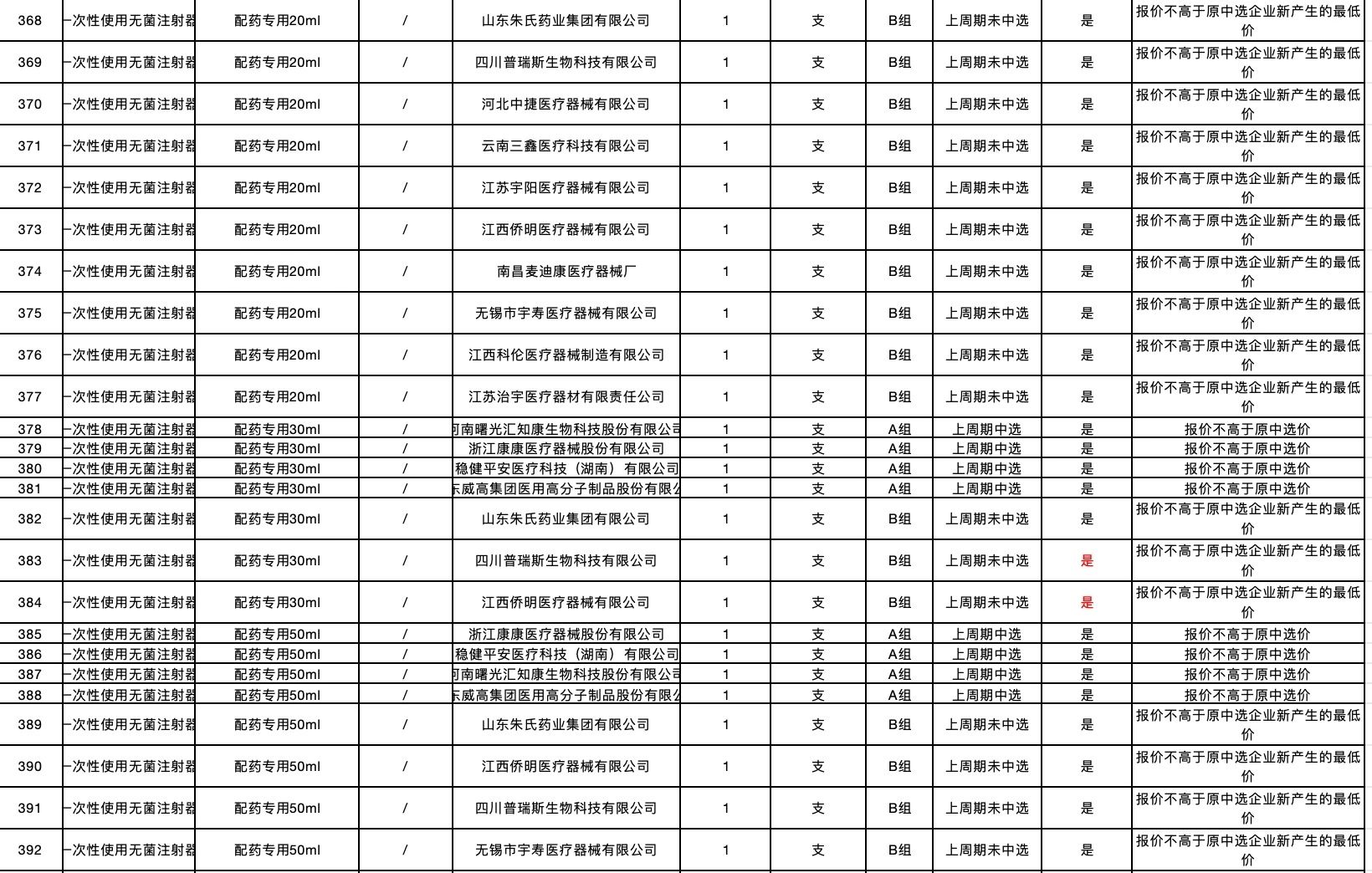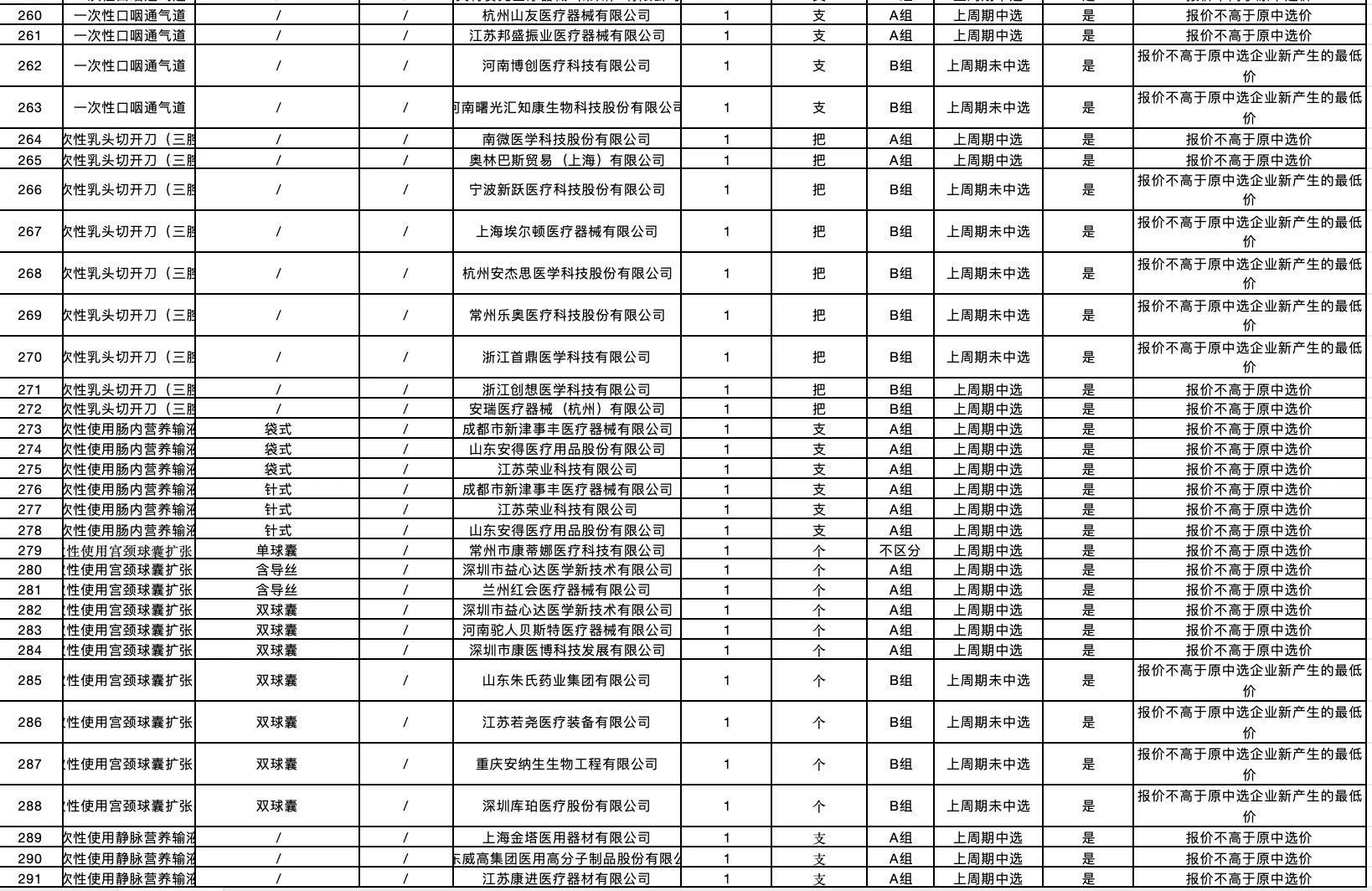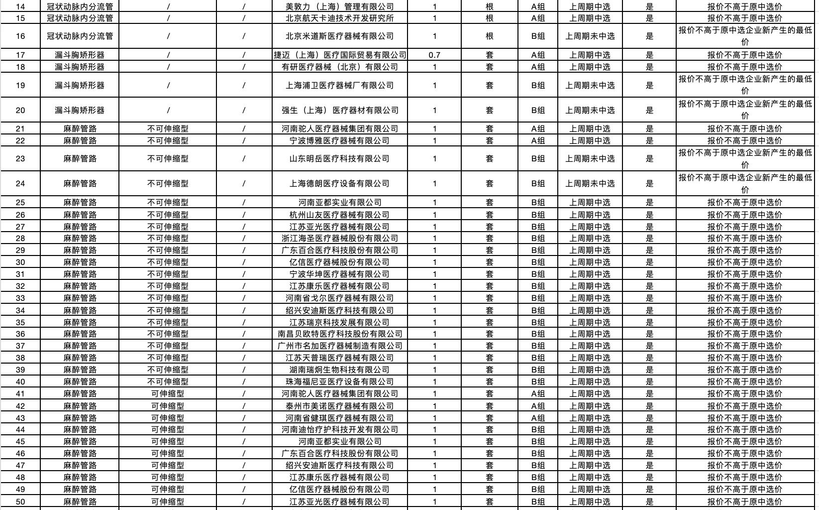 按照采購文件關(guān)于報價的規(guī)定,24個采購品種分47個產(chǎn)品分類進行報價,擬中選情況如下:
