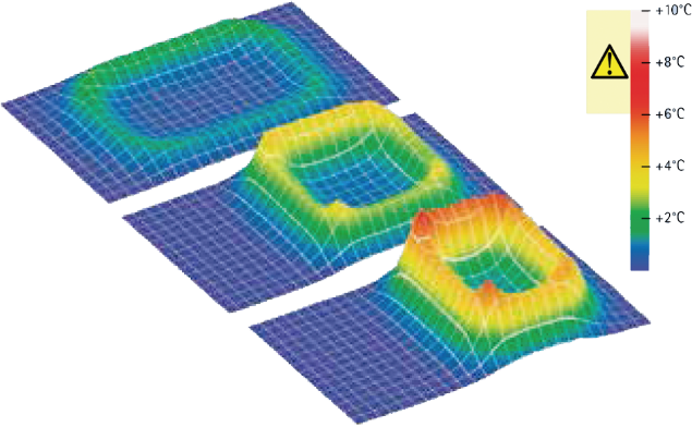 負(fù)極板可以安全自動(dòng)監(jiān)測(cè)、控制和報(bào)警,能有效防止儀器在異常情況下灼傷患者,安全性更高。 為了防止電外科手術(shù)過(guò)程中患者皮膚灼傷,全球電外科安全標(biāo)準(zhǔn)要求分散墊下方的溫升限制為6°C。熱成像測(cè)試證明FINESSE + Fin CQM系統(tǒng)可以在發(fā)生焊盤部位燒傷之前安全地關(guān)閉輸出。頂部圖像顯示完全連接的分散墊的最大溫升為2.2°C。當(dāng)墊偏離患者皮膚橫向剝離時(shí),F(xiàn)in CQM系統(tǒng)將檢測(cè)到錯(cuò)誤狀況。在Fin CQM允許的最極端條件下,檢測(cè)到的最大溫升為4.4°C(中心圖像)。如果沒(méi)有Fin CQM(底部),持續(xù)的墊分離會(huì)導(dǎo)致明顯的皮膚發(fā)熱,這可能會(huì)導(dǎo)致嚴(yán)重的患者灼傷。