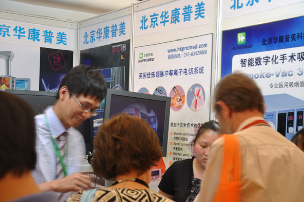 北京華康普美科技有限公司參加本次展會(huì).展位號(hào)C8。公司展出的婦科leep刀、宮腔鏡、智能數(shù)字化手術(shù)吸煙器、超脈沖等離子電切系統(tǒng)等產(chǎn)品在婦科LEEP手術(shù),整形外科、皮膚科、耳鼻喉科、眼科、口腔科等微創(chuàng)組織切割手術(shù)等手術(shù)中廣泛應(yīng)用,前來咨詢的中外醫(yī)院專家絡(luò)繹不絕,展出產(chǎn)品倍受中外醫(yī)院專家關(guān)注和信任。