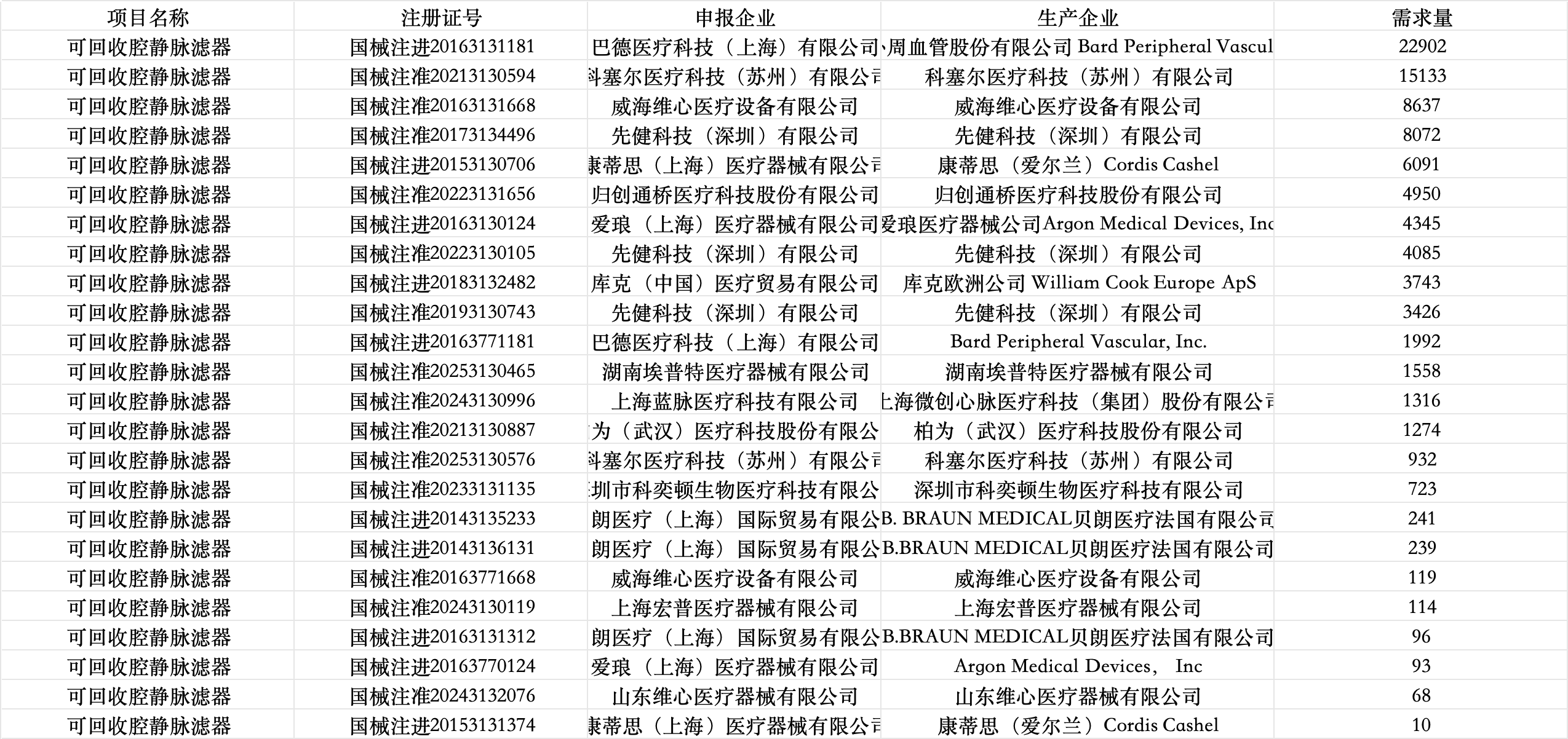 《公告》還披露了三類產(chǎn)品的采購需求量表:其中腔靜脈濾器90167個(gè)、射頻消融電極52218個(gè)、微波消融電極65402個(gè)。