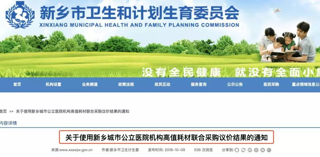 10月9日,河南省新鄉(xiāng)市衛(wèi)計委發(fā)布《關于使用新鄉(xiāng)城市公立醫(yī)院機構高值耗材聯(lián)合采購議價結果的通知》,將10天前開展的高值耗材聯(lián)合議價結果進行公示。