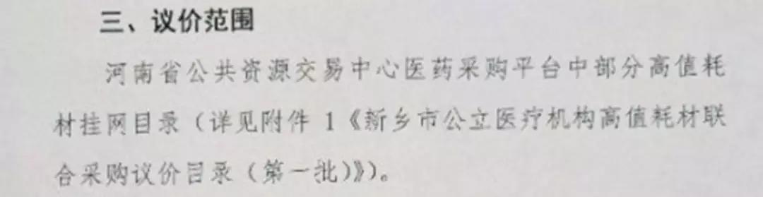 9月19日,新鄉(xiāng)市衛(wèi)計委發(fā)布的議價通知里的提到的“議價范圍”