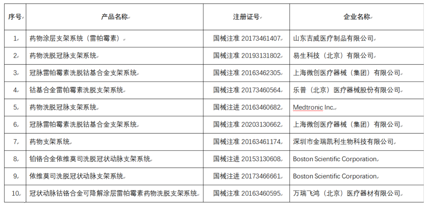 2020年11月5日,國家組織冠脈支架集中帶量采購在天津開標(biāo),共有11家企業(yè)的26個冠脈支架產(chǎn)品參加投標(biāo),擬中選名單包含來自8家企業(yè)的10個產(chǎn)品。醫(yī)療機(jī)構(gòu)臨床常用的主流產(chǎn)品基本中選,覆蓋醫(yī)療機(jī)構(gòu)意向采購量的70%以上。