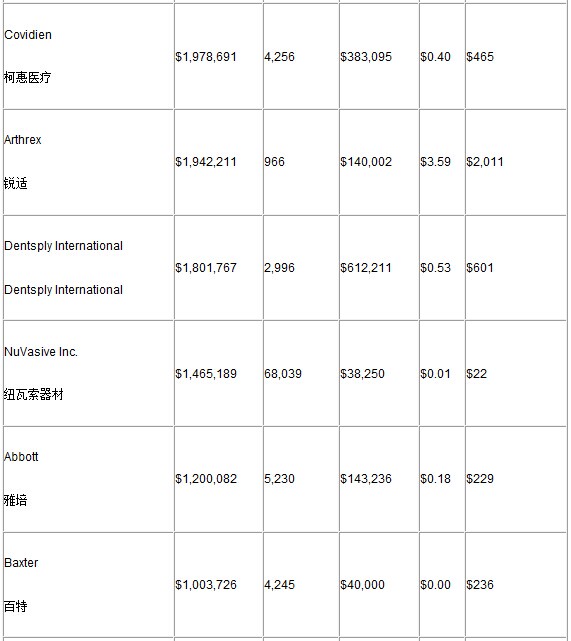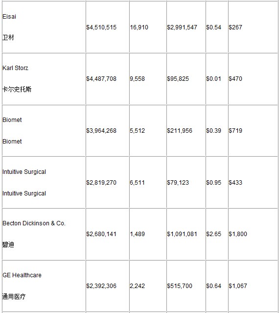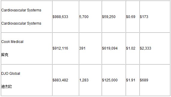 以下為付款排名前25位的醫(yī)療器械公司數(shù)據(jù):