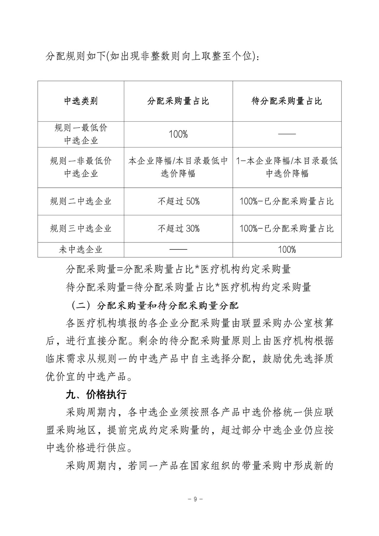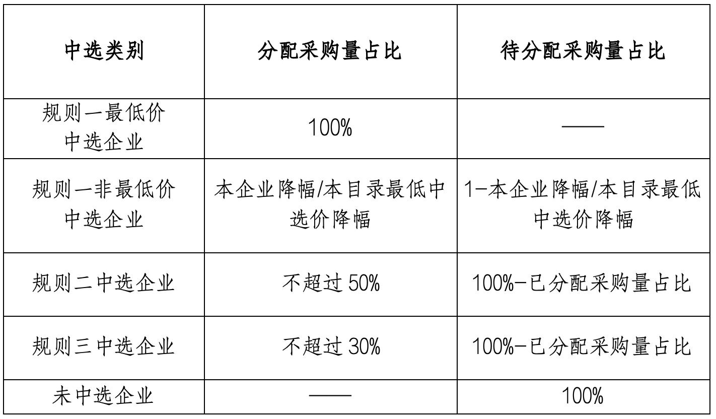各梯度規(guī)則中選分配采購(gòu)量占比如下: