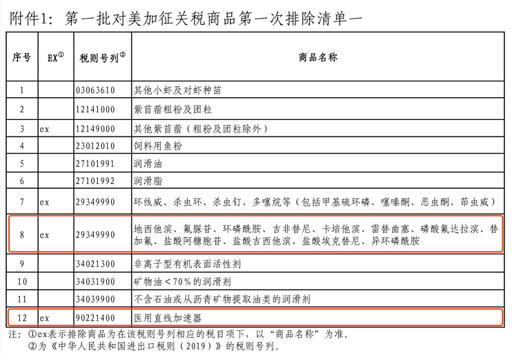 一批藥械不再加征關(guān)稅,對已加征的稅款予以退還。一些藥械仍然仍然繼續(xù)加征關(guān)稅(附清單)。