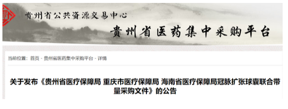 8月20日,貴州省醫(yī)藥集中采購平臺發(fā)布《貴州省醫(yī)療保障局 重慶市醫(yī)療保障局 海南省醫(yī)療保障局冠脈擴張球囊聯(lián)合帶量采購文件》(下稱《采購文件》)。
