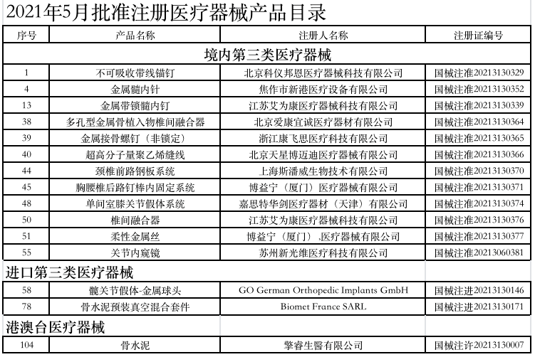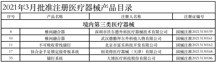 附:2021年1-6月獲批的骨科醫(yī)療器械產品