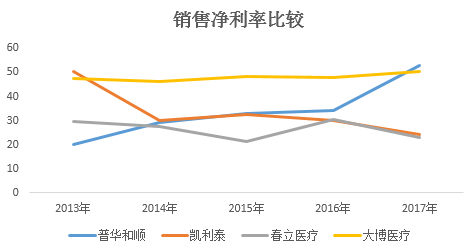 通過四家公司近五年來的毛利率與凈利率變動(dòng)情況不難看出,大博醫(yī)療的兩項(xiàng)指標(biāo)遙遙領(lǐng)先于其他三家。毛利率相互間的差距不算太大,但凈利率的差距還是很明顯的。