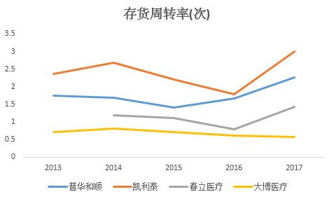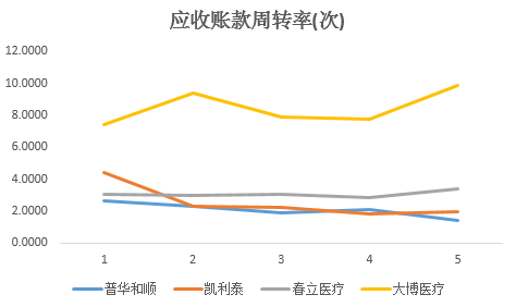 筆者依然選取上面提到的三家上市公司進(jìn)行比較分析。如下圖,大博醫(yī)療的存貨周轉(zhuǎn)率為最低,但其應(yīng)收賬款的周轉(zhuǎn)率卻是最高的。