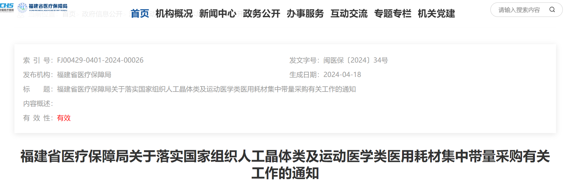 4月19日,福建醫(yī)保局發(fā)布《關(guān)于落實(shí)國(guó)家組織人工晶體類及運(yùn)動(dòng)醫(yī)學(xué)類醫(yī)用耗材集中帶量采購(gòu)有關(guān)工作的通知》,明確將在4月30日起執(zhí)行人工晶體、運(yùn)動(dòng)醫(yī)學(xué)國(guó)采品種的中選結(jié)果。