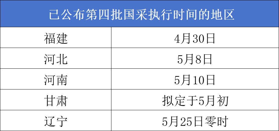 自河南率先官宣執(zhí)行時(shí)間后,第四批國(guó)采落地按下了“加速鍵”。