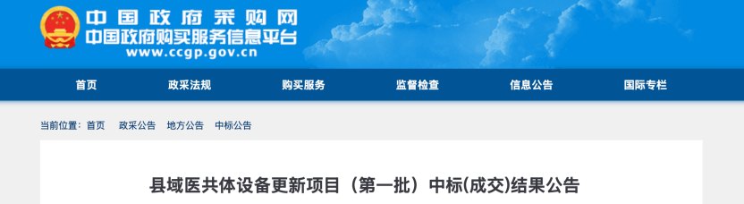 近日,中國政府采購網(wǎng)公布新疆衛(wèi)健委縣域醫(yī)共體設(shè)備更新項目第一批、第二批中標結(jié)果。