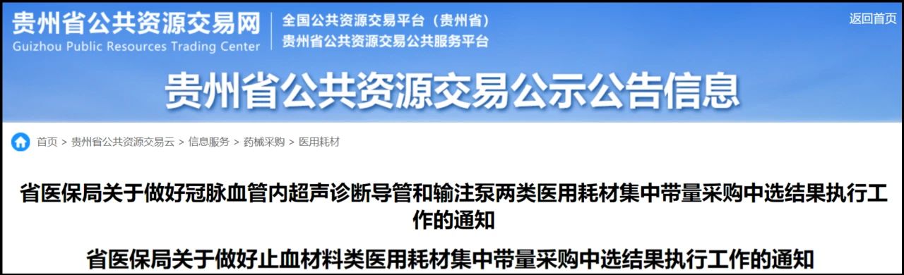 上述提到的浙江聯(lián)盟冠脈血管內(nèi)超聲診斷導管和輸注泵、內(nèi)蒙古聯(lián)盟止血材料類集采的中選結果也將于2024年6月20日在貴州落地。