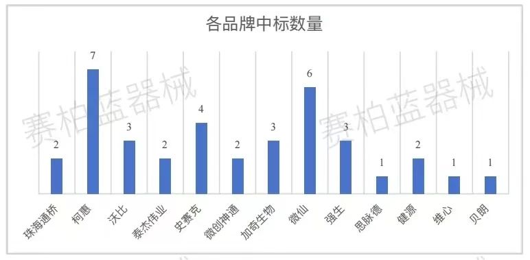 據(jù)賽柏藍(lán)器械梳理,本次集采最低價出自珠海通橋(3244元),最高價出自強(qiáng)生(6179元);在37個中選結(jié)果中,國產(chǎn)品牌占比為43%,國產(chǎn)品牌中標(biāo)最多者為沃比醫(yī)療和加奇生物(各3個),進(jìn)口品牌中標(biāo)最多者為柯惠(7個)。具體如下: