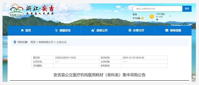12月10日,浙江省安吉縣人民政府發(fā)布《安吉縣公立醫(yī)療機(jī)構(gòu)醫(yī)用耗材(骨科類)集中采購(gòu)公告》(下稱《公告》),將對(duì)骨科類耗材集中采購(gòu),同時(shí)列出各類耗材的最低降價(jià)標(biāo)準(zhǔn),如要求創(chuàng)傷類國(guó)產(chǎn)耗材價(jià)格降幅不得低于25%。